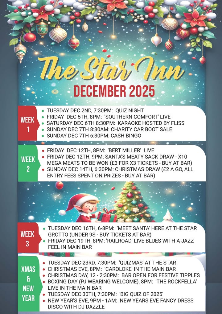 pssttt.. Santa’s let us into a little secret.. Santa and his little helpers are coming to visit the Star again this year! 🥳🎅🏼 He’s even told us he is bringing some extra special presents for children on the nice list!! If you would like to meet Santa please come and collect a special token from the bar £10 per child under 9 years old